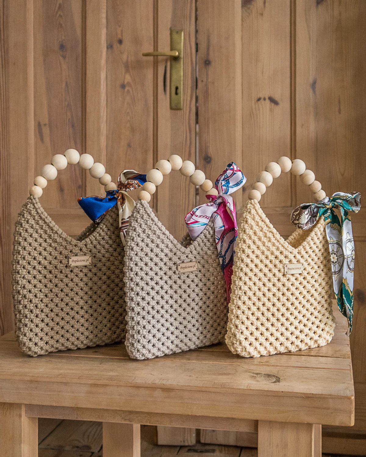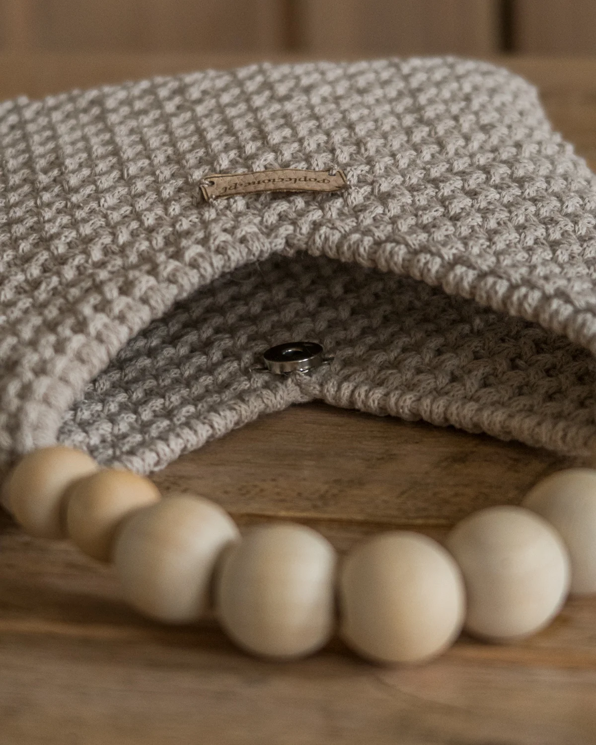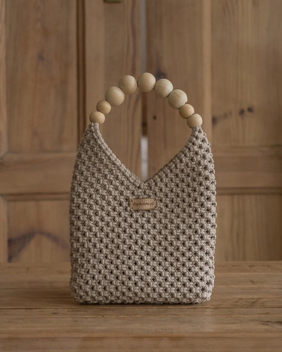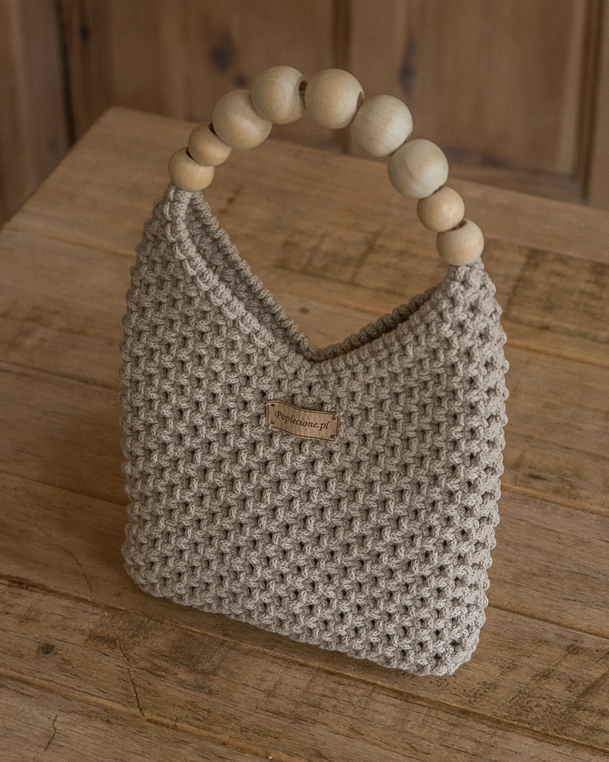 Wykonana z najwyższej jakości sznurka bawełnianego (stworzonego z przędzy z recyklingu), zachwyca misternym splotem i starannym wykończeniem. Drewniane koraliki tworzą oryginalny uchwyt, nadając torebce ciepły, rustykalny charakter.