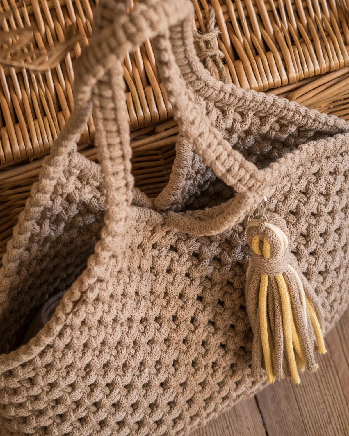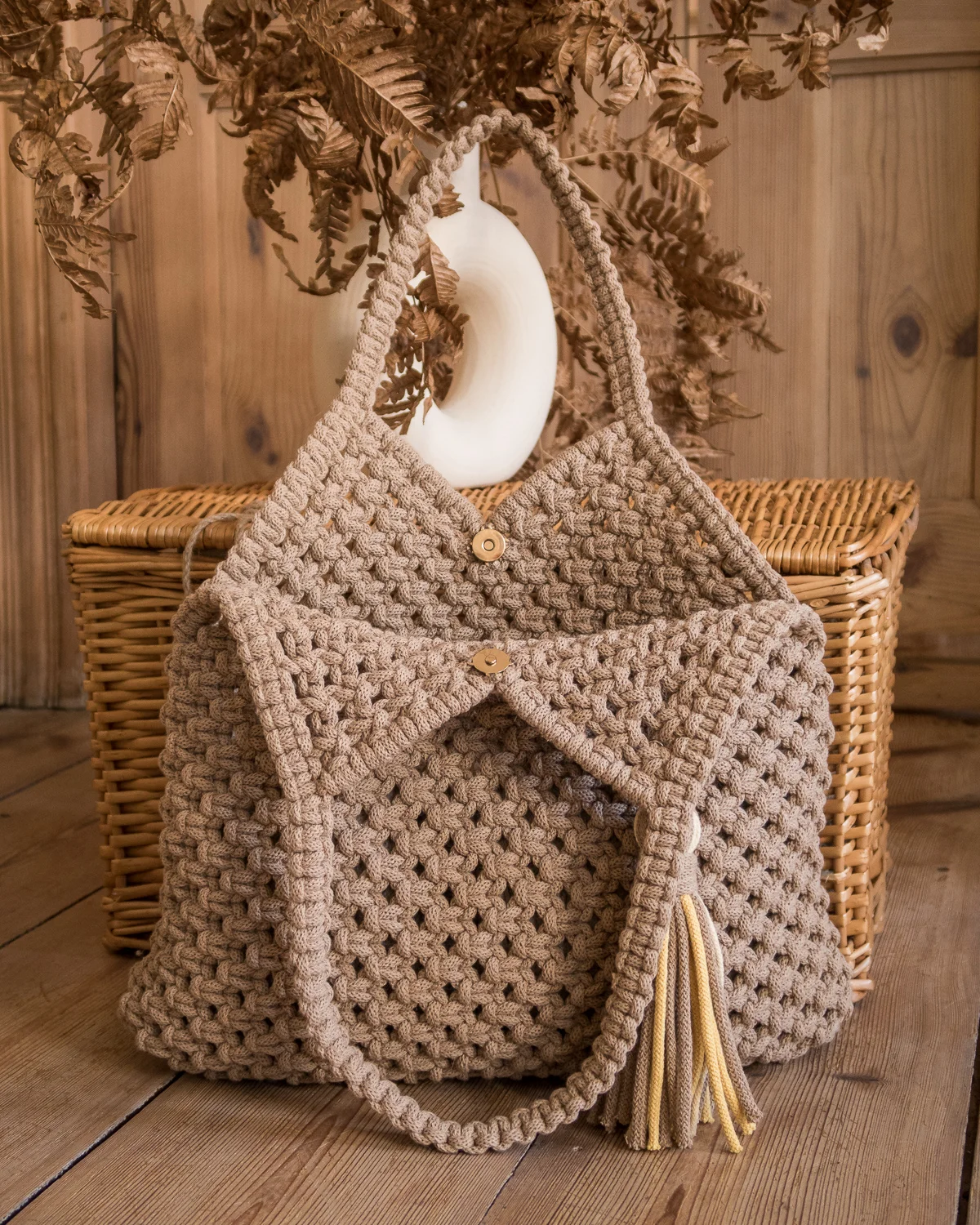 Dodaj wyjątkowego charakteru swoim stylizacjom z ręcznie wykonaną torbą w stylu boho. Ten unikalny model, został stworzony z miękkiego, bawełnianego sznurka w odcieniu waniliowym. Każdy egzemplarz jest wykonywany ręcznie techniką makramy, dzięki czemu masz pewność, że nikt nie będzie miał identycznej torby jak Ty.